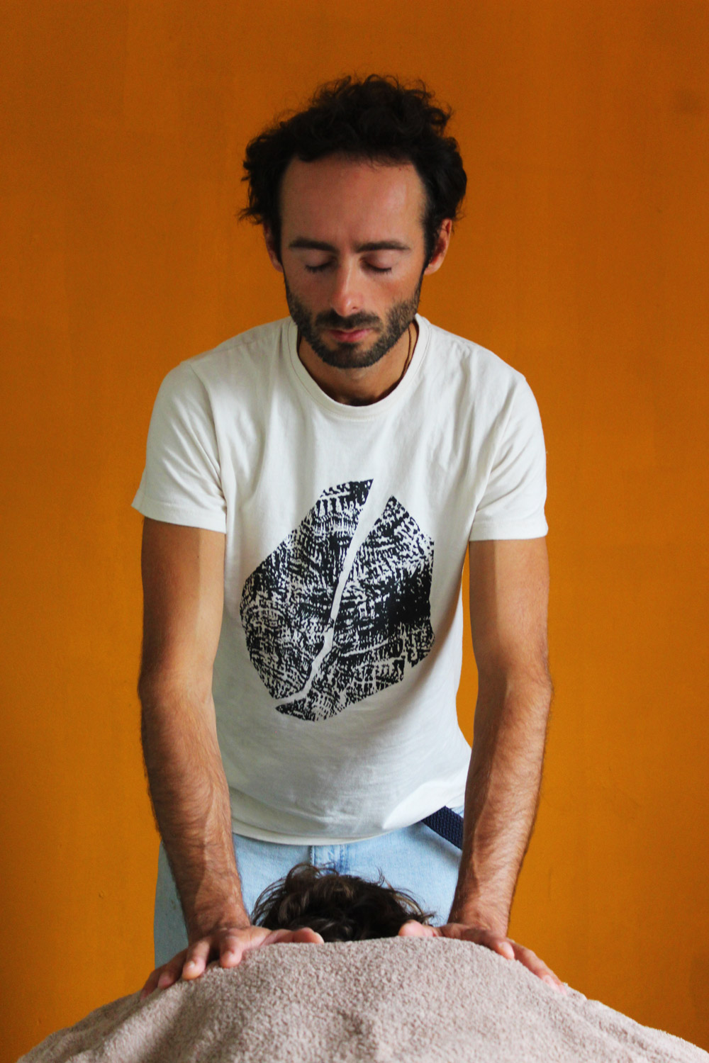 Oorspronkelijk opgeleid als industrieel ontwerper, heb ik het kantoorleven eventjes geprobeerd, maar snel ontdekt dat dit niets voor mij is. Daarna heb ik twee jaar rondgereisd in een camper, en kon ik in alle rust de dingen doen waar ik blij van werd: klimmen, mediteren, de natuur waarderen. Teruggekomen in de stad ben ik een opleiding tot masseur begonnen. Ik heb een rustige en aandachtige aard, en dat blijkt goed van pas te komen bij dit werk.